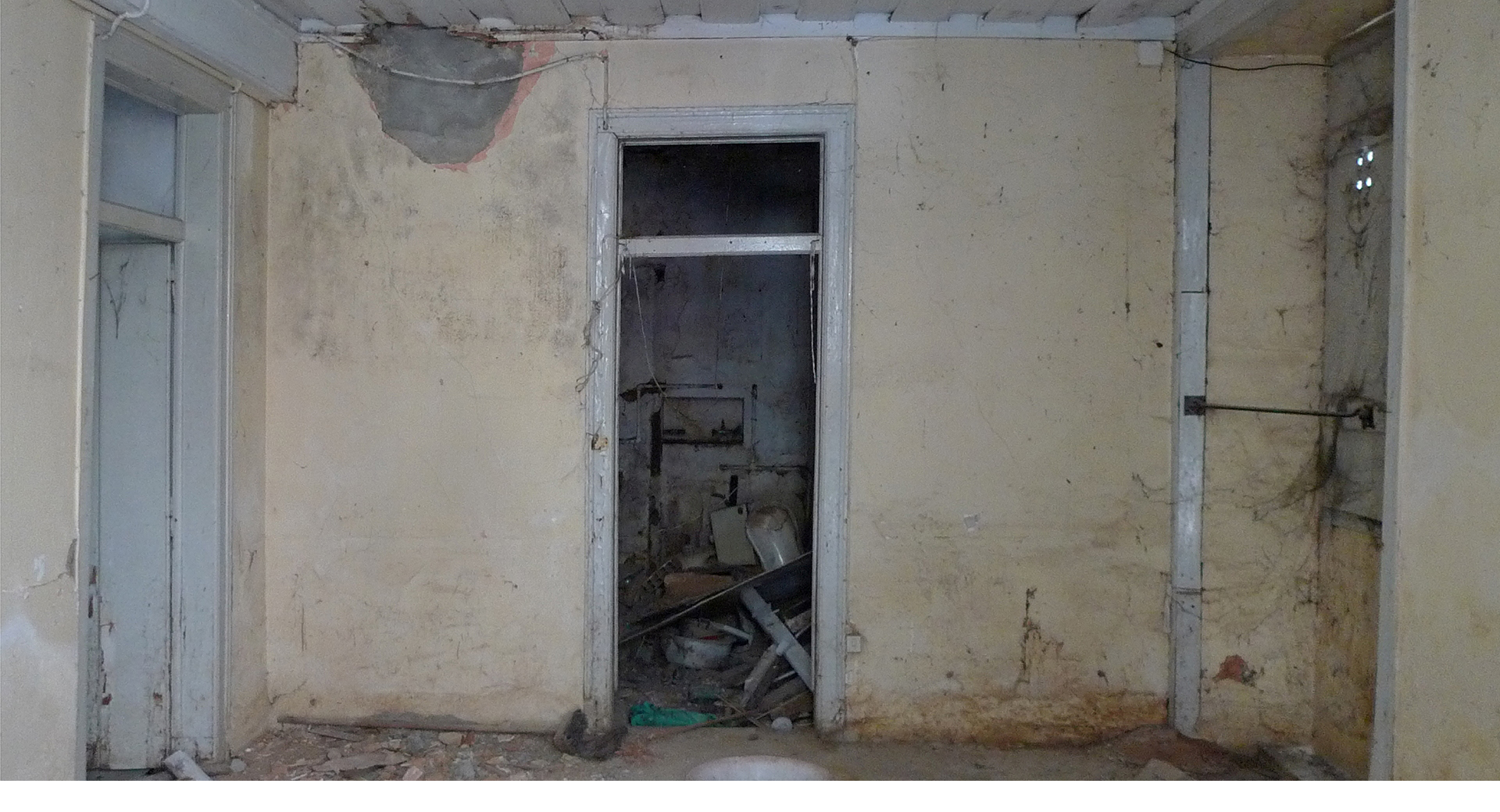 Ninguém pode realmente dizer em que direção a construção está progride: embora as paredes existentes estejam sendo desmanteladas, apresentam a aparência do estágio inicial da construção, há cem anos, quando os